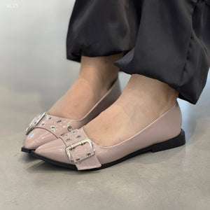 Estas baletas combinan comodidad y estilo con un diseño moderno que destaca por su hebilla metálica frontal. Su acabado brillante aporta elegancia y las hace perfectas para acompañar tanto outfits casuales como más sofisticados.