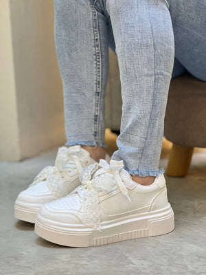 Estos tenis blancos con plataforma se roban todas las miradas gracias a sus delicados cordones en encaje, que mezclan lo urbano con un toque romántico y femenino. Perfectos para darle estilo y personalidad a cualquier outfit casual, mientras disfrutas de la comodidad en cada paso. ¡Un detalle chic que convierte lo básico en extraordinario!