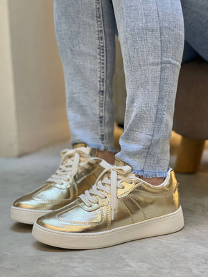 Tenis modernos y llamativos con acabado metalizado, diseñados para destacar en cualquier ocasión. Su estilo urbano con toques sofisticados combina perfectamente comodidad y tendencia, convirtiéndose en el complemento ideal para un look versátil y actual.