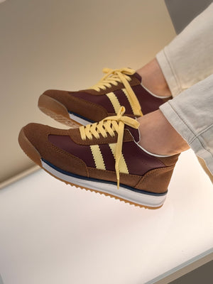 Tenis deportivos con diseño moderno y lleno de estilo, perfectos para acompañarte en tu día a día. Su combinación de texturas y líneas laterales le dan un toque dinámico que destaca en cualquier look. Son ligeros, cómodos y fáciles de combinar, ideales para outfits casuales o urbanos.