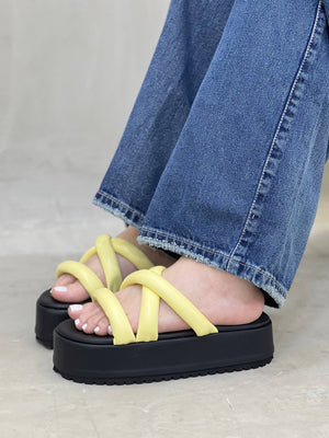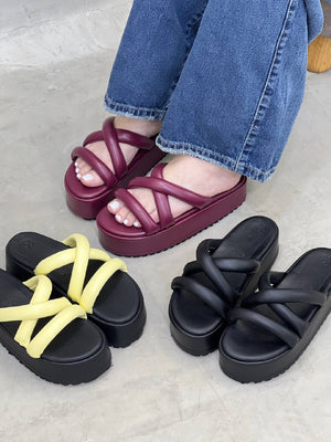 Nuestras sandalias con plataforma acolchadas con tiras cruzadas son el complemento perfecto para un look moderno, cómodo y lleno de estilo. Su diseño tipo chunky aporta altura sin perder ligereza, mientras que las tiras anchas acolchadas brindan un ajuste firme y súper suave sobre el pie.