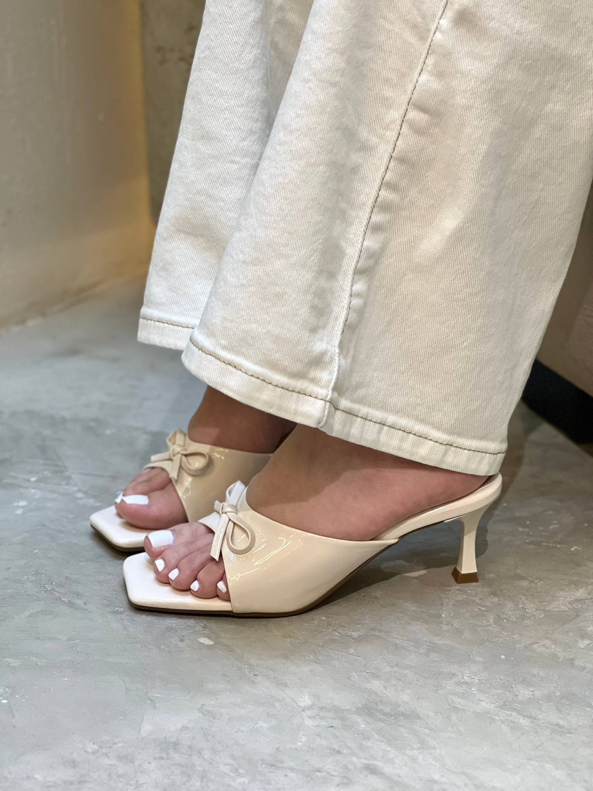 Tacón con un diseño delicado y femenino, perfecta para quienes buscan elegancia sin sacrificar la comodidad. Su detalle de moño frontal añade un toque distintivo y cómodo, mientras que la forma delantera cuadrada le da un aspecto moderno y actual. Ideal para complementar looks formales, casuales arreglados y outfits de noche.