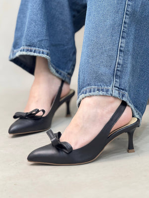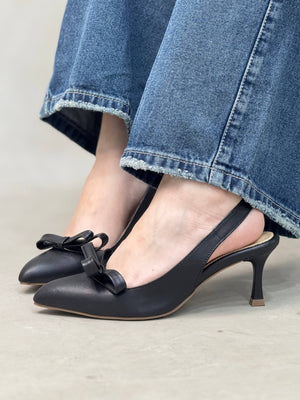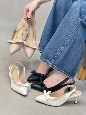 Elegancia y dulzura en un solo diseño. Estos tacones en punta destacan por su detalle de moño al frente, que aporta un toque femenino y sofisticado. Disponibles en colores neutros que combinan fácilmente con cualquier look.