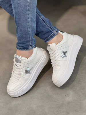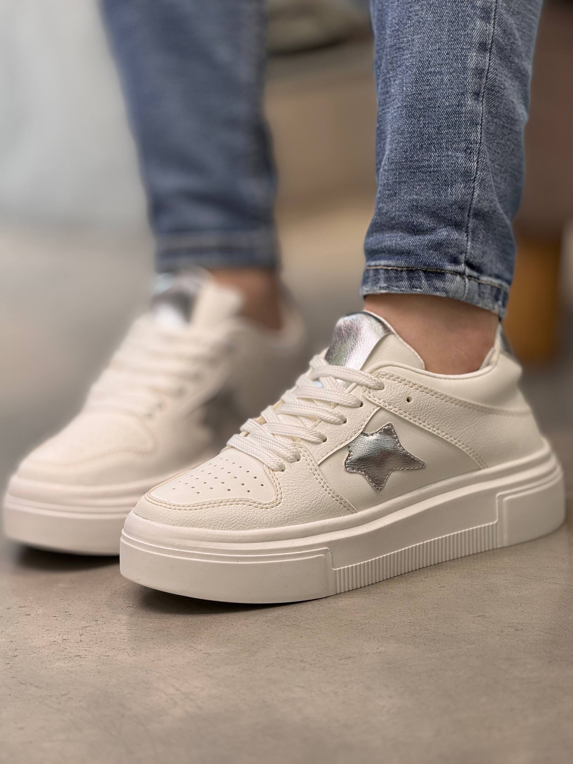 Tenis urbanos con un diseño moderno y femenino. El detalle en estrella metálica lateral y la lengüeta en acabado brillante los convierten en el toque perfecto para elevar cualquier outfit casual. Su plataforma aporta altura y comodidad para un look siempre trendy.