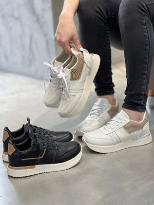 Diseñados para mujeres que aman la comodidad con estilo. Estos tenis en cuero combinan un diseño moderno con una suela tipo plataforma que brinda altura y soporte sin perder ligereza. Ideales para usar a diario o elevar tus looks casuales con un toque sofisticado.